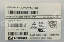 PTC Resettable Fuse 0.75A(hold) 1.5A(trip) 8VDC 100A 0.6W 0.2s 0.09Ohm SMD Solder Pad 1206 T/R