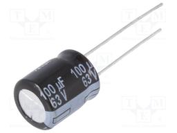 Aluminum Electrolytic Capacitor, 100 uF, 63 V, 20%, 6000 hours @ 105C, Radial Leaded