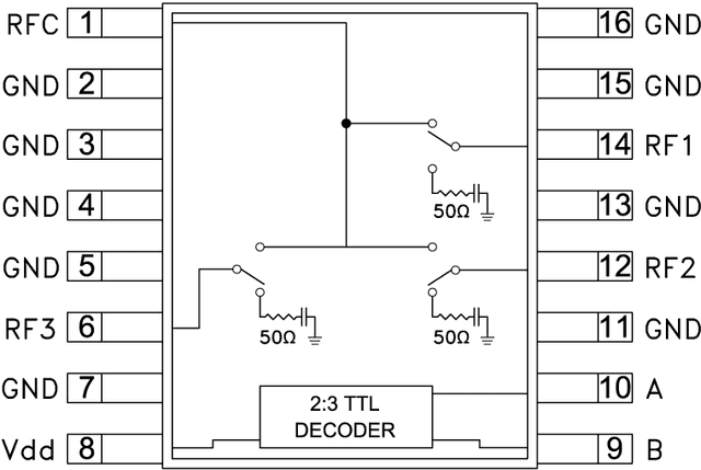 GaAs MMIC SP3T Non-Reflective Switch, DC - 3.5 GHz