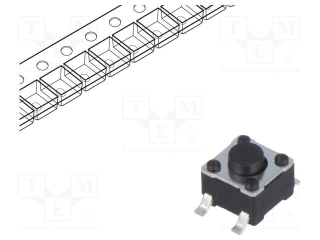 Switch Tactile N.O. SPST Round Button Gull Wing 0.05A 12VDC 100000Cycles 1.77N SMD T/R
