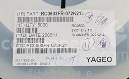 SMD Chip Resistor, 2.21 kOhm, 1%, 100 mW, 0603 [1608 Metric], Thick Film, General Purpose