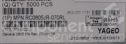 GENERAL PURPOSE CHIP RESISTOR Metal Glaze/thick Film, 0.125W, 0ohm, Surface Mount, 0805