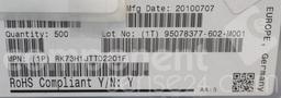 Res Thick Film 0603 2.2K Ohm 1% 0.1W(1/10W) 100ppm/C Pad SMD Automotive T/R