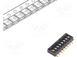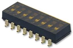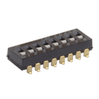 Switch DIP OFF ON SPST 8 Recessed Slide 0.1A 50VDC Gull Wing 1000Cycle 2.54mm SMD T/R