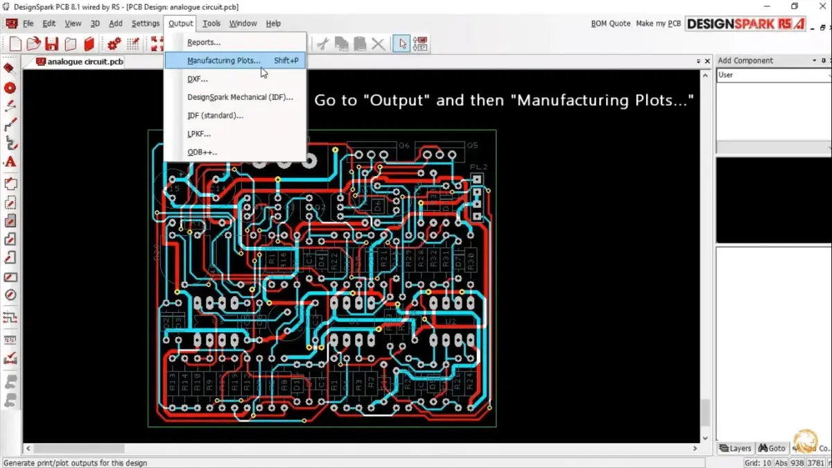 1) Once you have designed your PCB, click on output.