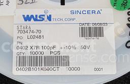 0402 100 pF 50 V 10 % Tol. X7R Surface Mount Multilayer Ceramic Capacitor
