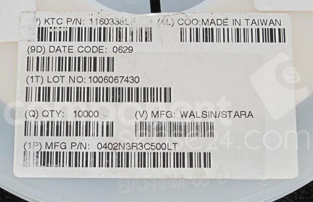 Cap Ceramic 3.3pF 50V C0G 0.25pF Pad SMD 0402 125C T/R