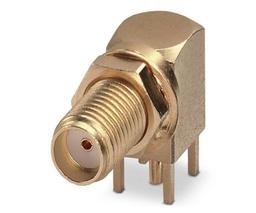Connector, SMA Coaxial, Right Angle Jack, 12.4 GHz, Through Hole Mount, Solder