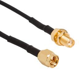 RF / Coaxial Cable Assembly, SMA Plug to SMA Bulkhead Jack, RG174/U, 50 ohm, 19.69 , 500 mm, Black