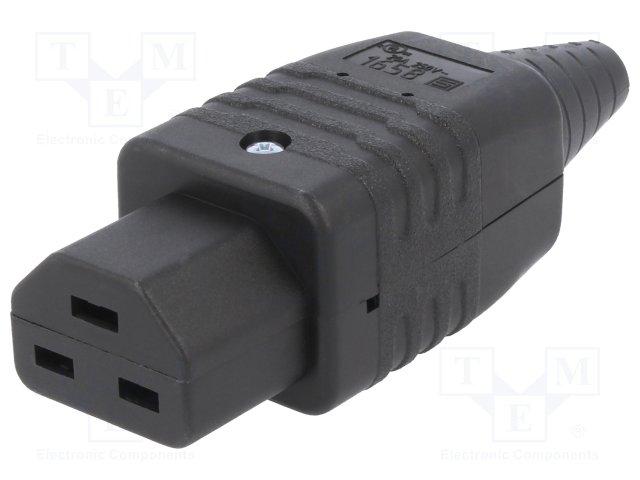 Appliance inlet C21, 3 pole, cable assembly, screw connection, 1.5 mm, black, 1658.0000