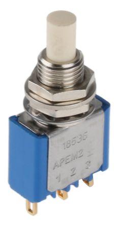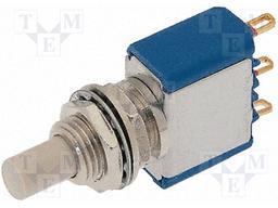 Switch, P/b, SPDT, On-mom, Round Actuator, Brass/gold, 0.1A, 30VDC, Solder