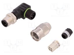 CIRCULAR CONNECTOR, PLUG, 4POS, M12, RIGHT ANGLE; For Use With: 4 Position M12 S