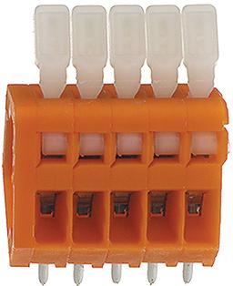 WAGO 233-504 4 Pole 6A 2.54mm Push Button PCB Terminal Block Orange