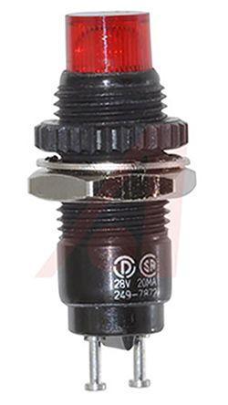 Panel Mount Indicator Red LED 0.375" 28 VDC High Hat 249 Series | Dialight 249-7872-3331-504F