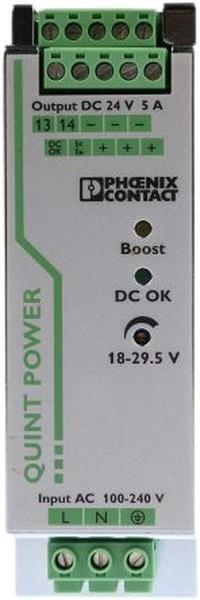 Power Supply; AC-DC; 24V; 5A; 85-264V In; Enclosed; DIN Rail Mount; 120W; QUINT Series