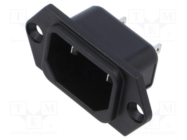 Iec Connector Inlet, C18, 250V AC, 10A, Screw-on, Solder Term., 6102-3 Series