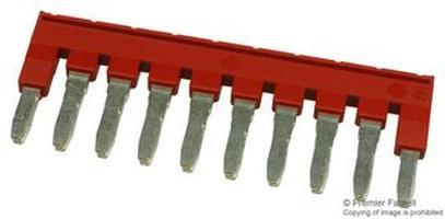 Cross connector/jumper for modular terminal block, Number of positions: 10, Color: red