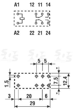 Relay, 2 Form C (no/nc), 24 V (DC), 900 , 8 A, 400 V (AC), Monostable, 40.52.9.024.0000