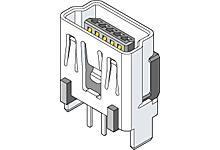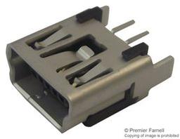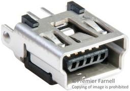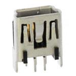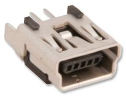 Mini USB, B-Receptacle, Vertical, Through Hole Solder Tails and Shell Tabs with Dimples