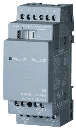 Logo! DM8 230R, Exp. Module, Pu/i/o: 230V/230V/RELAIS, 2TE, 4 DI/4 Do For Logo! 8