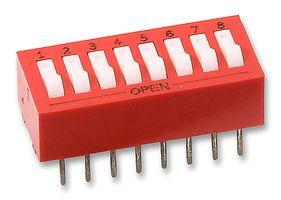 Switch DIP ON OFF SPST 8 Raised Rocker 0.15A 30VDC PC Pins 2000Cycle 2.5mm Thru-Hole Tube