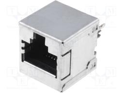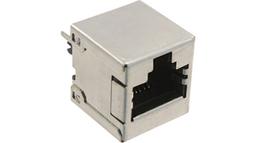 Conn., Data, Modular Jack, Vertical, Shielded, 8/8, Cat 5E, Through Hole, Gold Plate