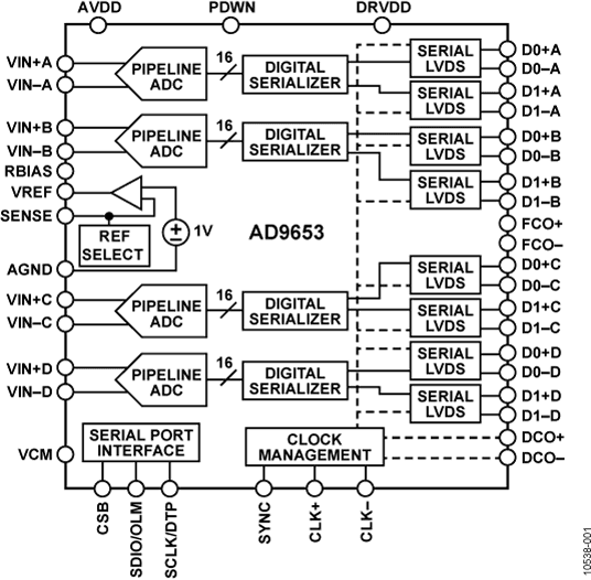 Quad, 16-Bit, 125 MSPS Serial LVDS 1.8 V Analog-to-Digital Converter