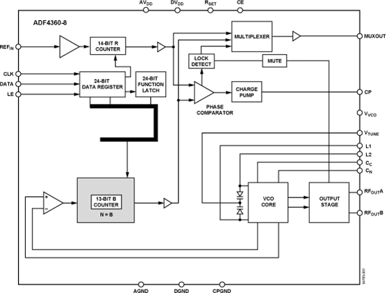 Integrated Integer-N Synthesizer and VCO - Output Frequency 65 to 400