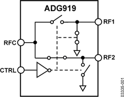 Wideband, 43 dB Isolation at 1 GHz, CMOS 1.65 V to 2.75 V, 2: 1 Mux/SPDT Switches