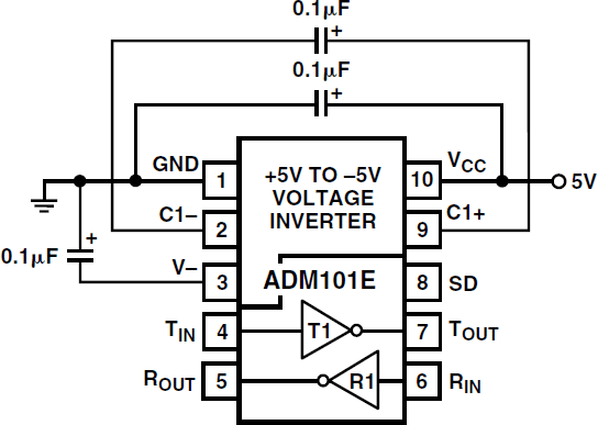 Single Transmitter/Receiver RS-232 10-Pin MSOP T/R