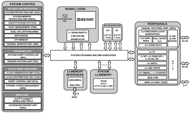 400MHz SHARC+ DSP with 640KB L1, 256KB Shared L2 SRAM, 120-lead LQFP_EP
