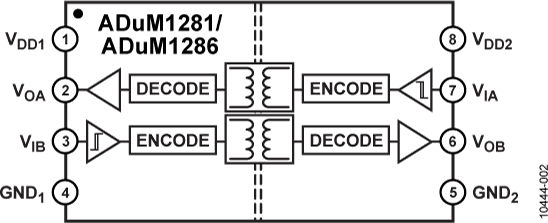 3kV rms, Default Low, Dual-Channel Digital Isolators (1/1 Channel Directionality)