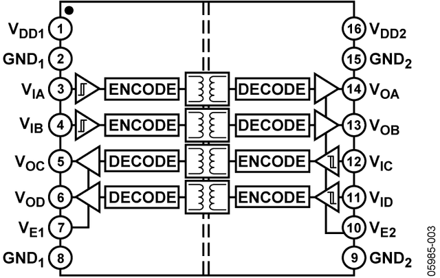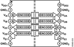 ANALOG DEVICES ADUM3402ARWZ Digital Isolator, Quad, 2, 100 ns, 2.7 V, 5.5 V, SOIC, 16 Pins