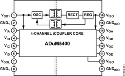 Quad-Channel Isolator with Integrated DC-to-DC Converter (4/0 channel directionality)