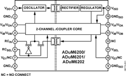 Dual-Channel, 5 kV Isolators with Integrated DC/DC Converter (2/0 channel directionality)