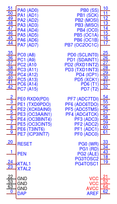 8-bit AVR MCU, 64 KB, 4096 Bytes, 16 MHz, 2.7 to 5.5V, VQFN-64, RoHS