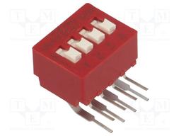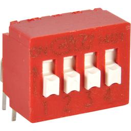 Switch DIP OFF ON SPST 4 Extended Slide 0.1A 25VDC PC Pins 10000Cycles/Switch 2.54mm Thru-Hole Tube
