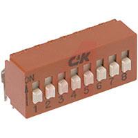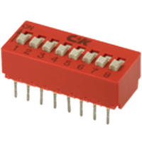 Switch DIP OFF ON SPST 8 Extended Slide 0.1A 25VDC PC Pins 10000Cycles/Switch 2.54mm Thru-Hole Tube