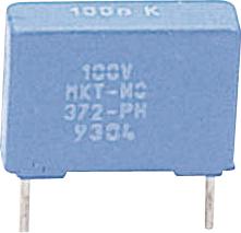 Cap Film 0.1uF 100V PET 10% (12.5 X 4 X 10mm) Radial Plastic Rectangular Can 10mm 105C Loose