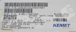 Capacitor; Ceramic; Cap; 15.0pF; Tol 5%; SMT; Vol-Rtg 50V; C0G; Cut Tape | KEMET C0603C150J5GACTU
