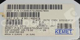 Ceramic capacitor, 4.7 nF, 50 V (DC), 5 %, SMD 1206, C0G, C1206C472J5GAC7800