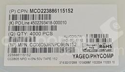 Surface Mount Ceramic Multilayer Capacitor 0.0015uF 5% C0G 50V 0805 Paper T/R