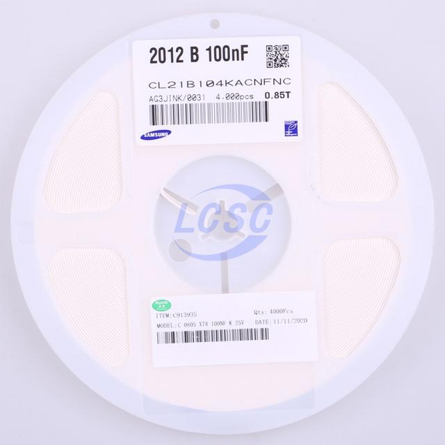 Ceramic Capacitor, Multilayer, Ceramic, 25V, 10% +Tol, 10% -Tol, X7R, 15% TC, 0.1uF, Surface Mount, 0805