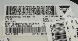 SMD Chip Resistor, 33 ohm, 1%, 100 mW, 0603 [1608 Metric], Thick Film, General Purpose