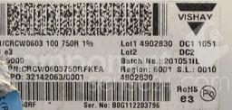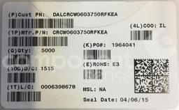SMD Chip Resistor 750 Ohm 1% 100 Mw 0603 [1608 Metric] Thick Film General Purpose