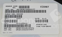 Resistor, Thick Film; 2 K Ohms; Case 1206; 0.25W; +/-1%; SMD; 100ppm/K; 200V; 1000 Mohm