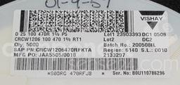Resistor, Thick Film; 470 Ohms; Case 1206; 0.25W; +/-1%; SMD; 100ppm/K; 200V; 1000 Mohm