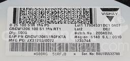 1206 51 Ohms 1% Thick Film Surface Mount Chip Resistor