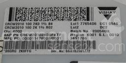 CRCW Series 2010 2 kOhm 1 % 0.75 W 100 ppm/K Surface Mount Thick Film Resistor