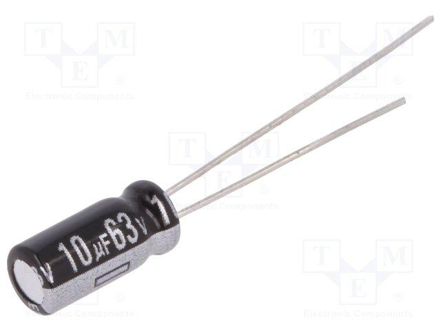 Cap Aluminum 10uF 63V 20% (5 X 11mm) Radial 2mm 30mA 5000h 105C Bulk